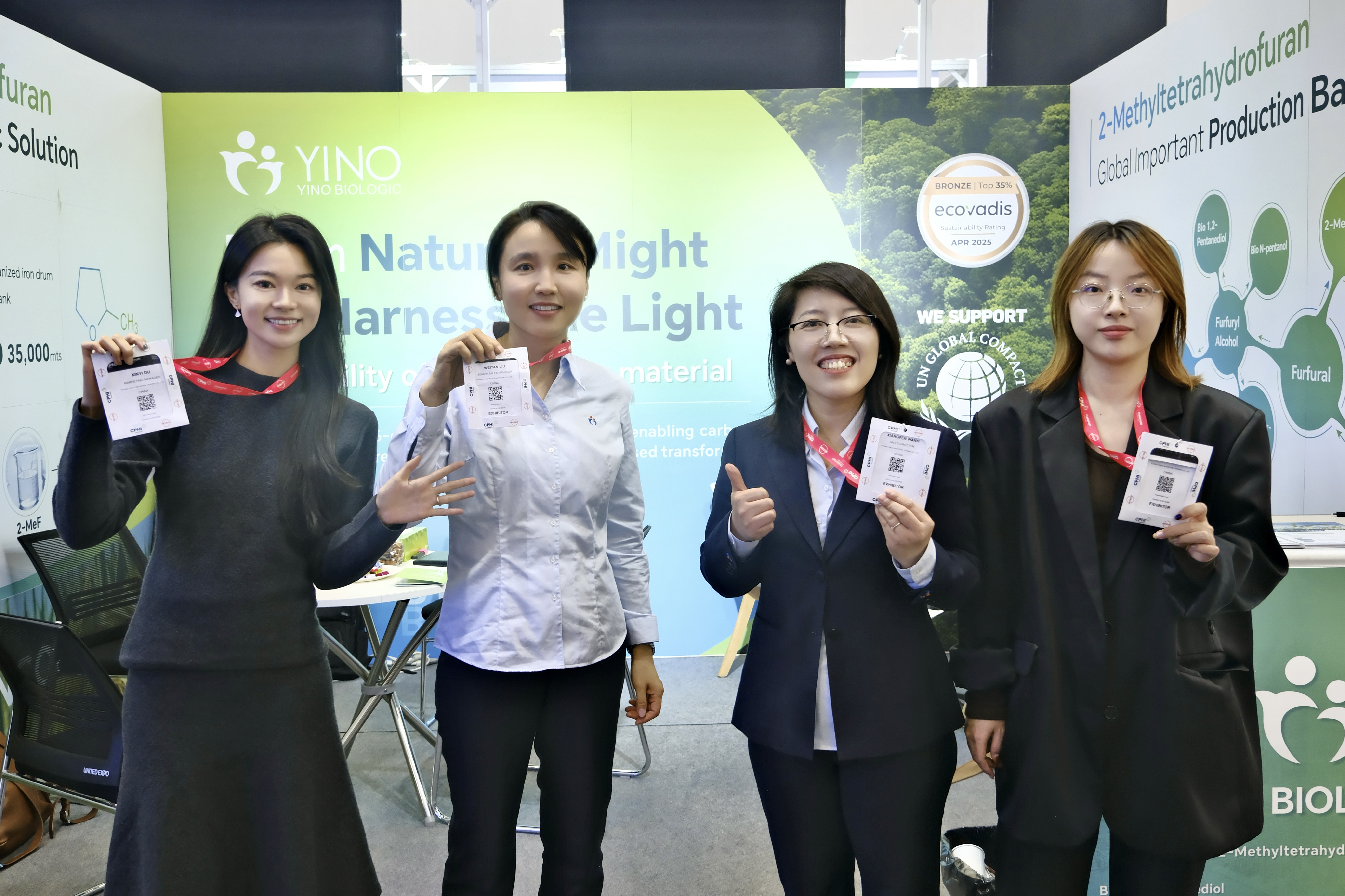 展會期間,YINO Biologic 展臺吸引了來自歐洲、印度、北美及亞洲的眾多制藥企業(yè)代表,成為現(xiàn)場關注的焦點。多家國際制藥公司與 API 供應商對公司在綠色溶劑替代方案、碳減排路徑及合規(guī)標準等方面的實踐表示高度認可,并就未來合作進行了深入交流。多位合作伙伴認為,YINO 的非糧生物基解決方案為制藥企業(yè)在可持續(xù)研發(fā)與生產(chǎn)優(yōu)化方面提供了切實可行的新路徑,助力全球客戶共同構建低碳高效的綠色供應鏈。